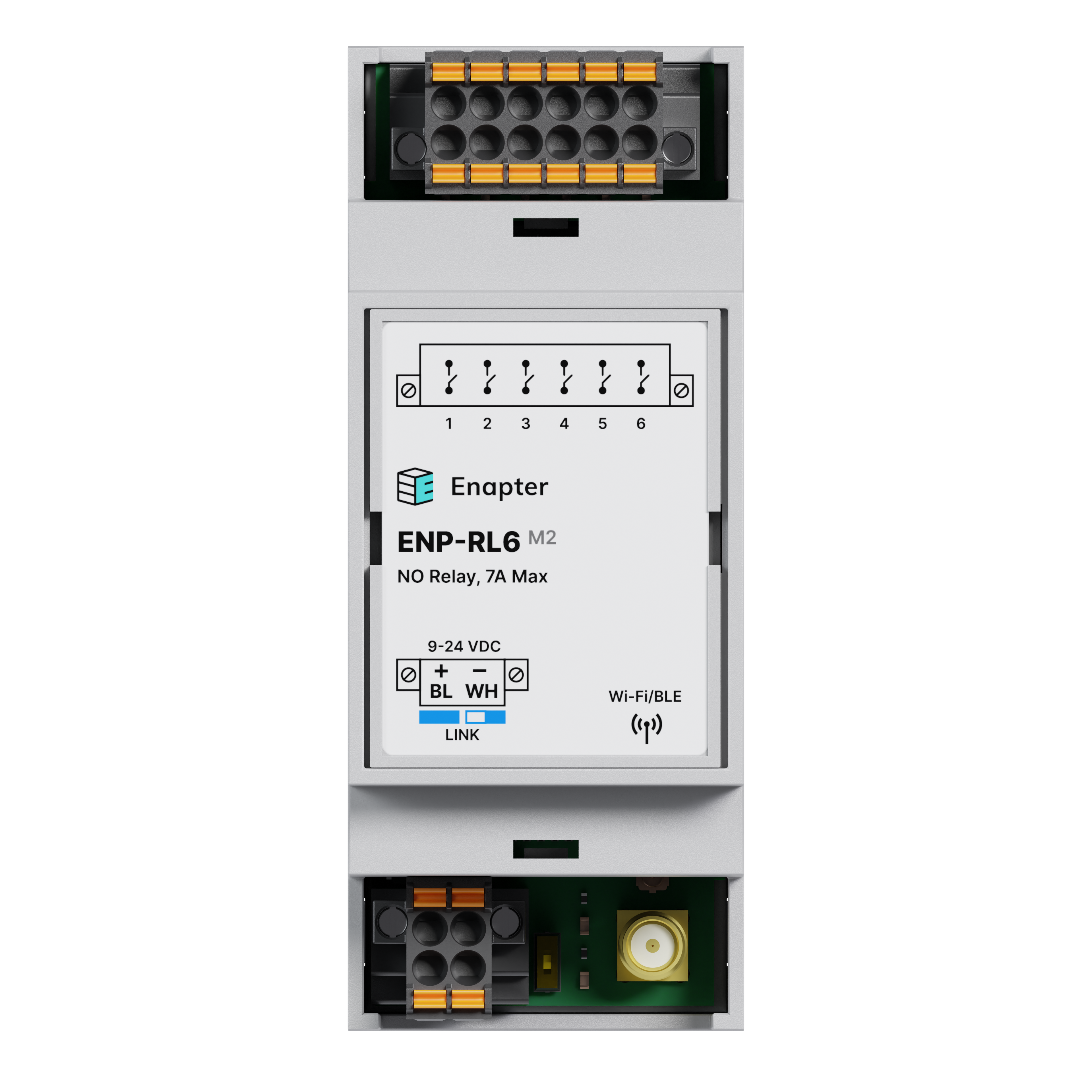 The ENP-RL6 M2 Module features a wired bus Enapter Link interface alongside wireless Bluetooth and Wi-Fi capabilities, enabling control and secure data transmission to the Enapter Gateway and Cloud. Additionally, it can communicate with other modules via the wired Enapter Link protocol.